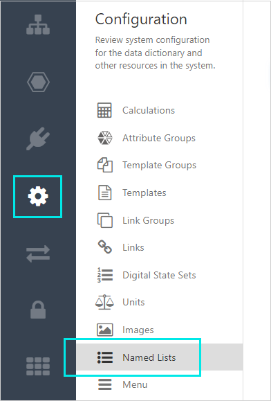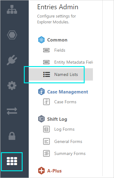 A Named List enables items to be presented in a list, wherever a Field of type List is used. This allows users to choose from a list of valid items when they are completing an entry form.