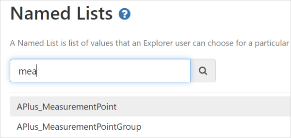 To edit an existing list, use the search to filter the list of Named Lists and select a list from the search results.