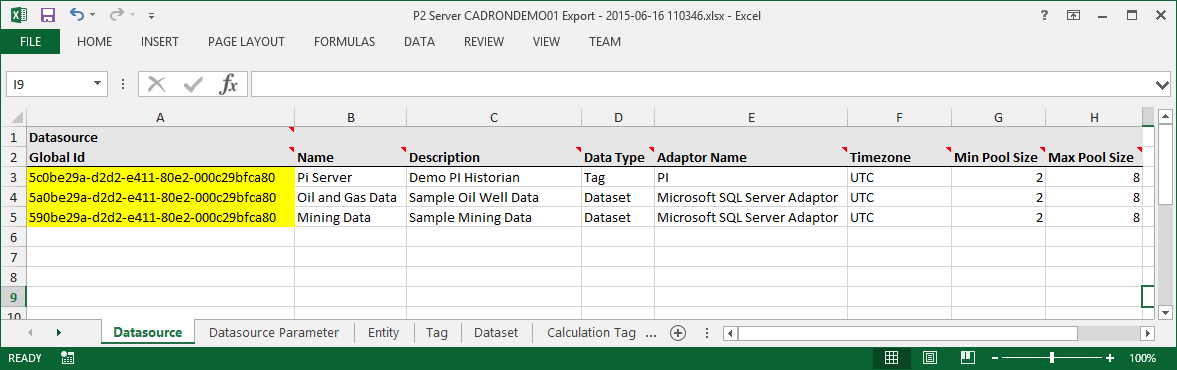 Note: The GUID is exported from the database into the Global Id column. Do not change this, or the database will not recognise the row.