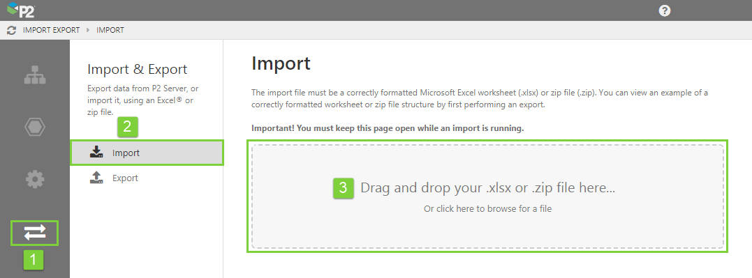 1. In IFS OI Server Management, click the Import/Export icon in the navigation bar.