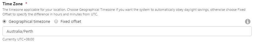 All adaptors require the “Time Zone” parameter to be configured on each datasource. The parameter tells the adaptor the time zone of the source data, so that the adaptor knows how to convert date times between the source data and IFS OI Server (UTC and/or ProcessingTimeZone). The parameter must either contain an IANA time zone name or a fixed UTC offset.