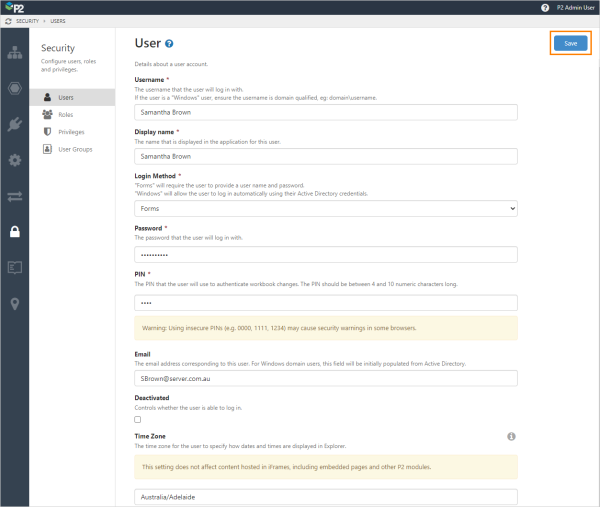 - Password: This only applies to the Forms login method, as Windows users will use the password managed in Active Directory. There is no restriction on a password, however you should adhere to your corporate policy.