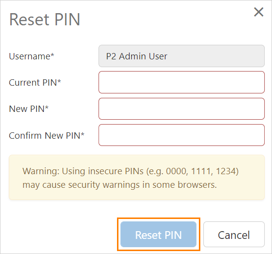 To reset your PIN, first enter your Current PIN, then enter your new PIN twice and select Reset PIN.