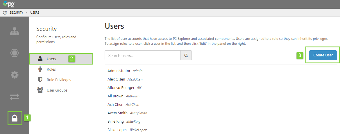 - Active Directory: The AD Sync tool will automatically add all users in Active Directory that are configured to have access to P2 Explorer. For instructions on running the AD Sync tool, refer to the P2 Explorer Installation Guide.