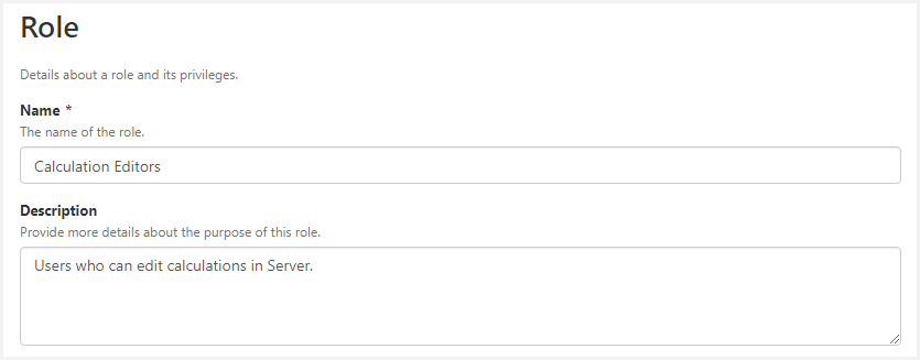 5. In the Privileges matrix, select the privileges you want to assign to this role. E.g. If you want to create a role for calculation editors, click the Edit privilege for Calculations in the Server module.
