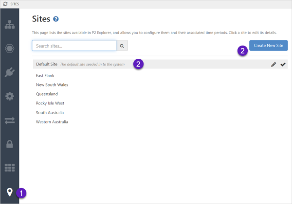 If you are creating a site for the first time, you will see a Default Site seeded into the system. You can choose to edit the default site, or add a new one.