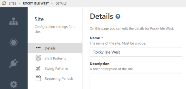 | Default Shift Pattern | A shift pattern can be specified as the default pattern for that site, and it will appear as the default shift in Workbooks. This is used by shift-based calculations. |