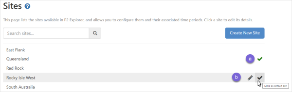 Note: To edit an existing site, use the Search function to filter the list of sites and select from the displayed list.