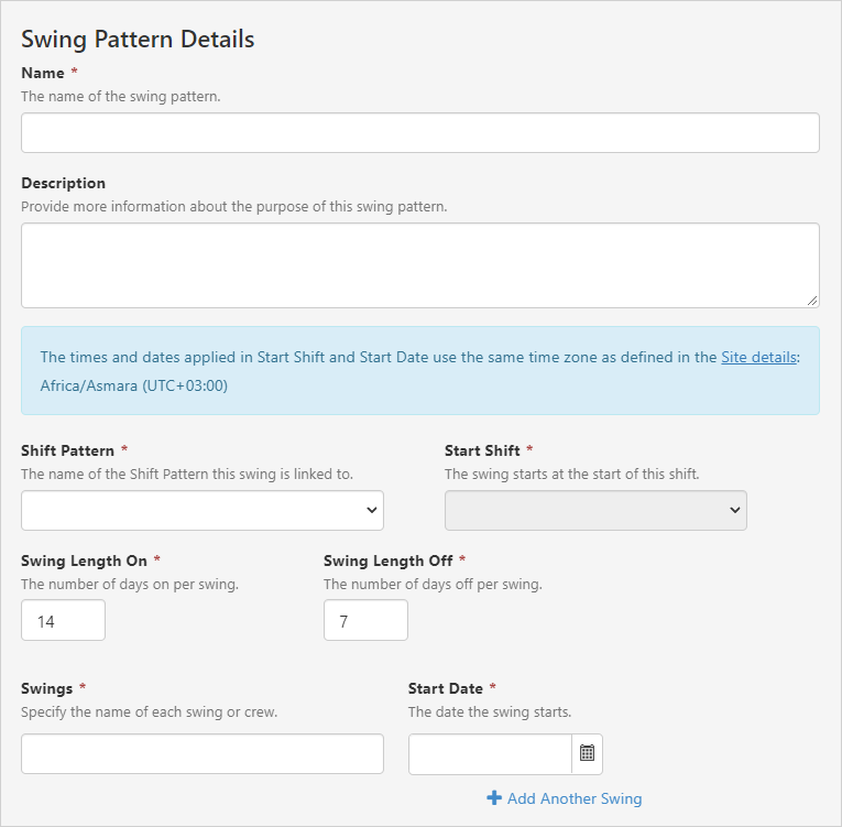 | Shift Pattern | The name of the shift pattern the swing is linked to. |