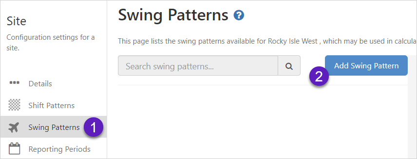 | Swing Patterns | Displays the list of available swing patterns, and the option to add a new swing pattern. Note, swing patterns are only used in Shift Log. |