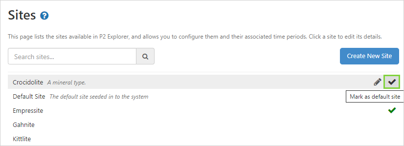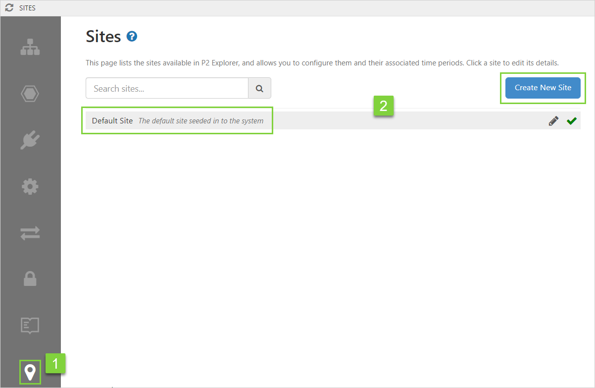 If you are creating a site for the first time, you will see a Default Site seeded into the system. You can choose to edit the default site, or add a new one.