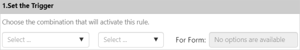 The Trigger is what activates the rule. It can be an entry being created, or updated, for a particular form.