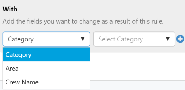 With Choose which field to change. The field list is populated from the form selected in 1. Set the Trigger. |