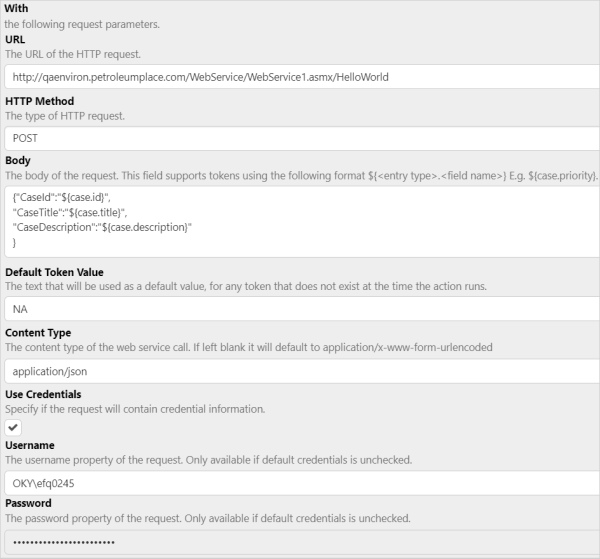 A configured Call web service action: |