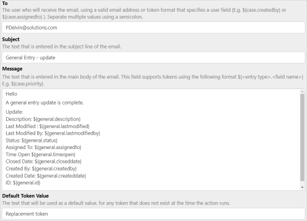 An action can be configured to send an email.