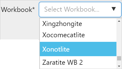 Workbook Select a Workbook. |