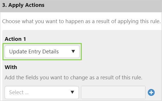 Update Entry Details allows you to assign new values to fields before the entry is saved.