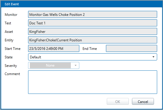 State: The state that was reached to raise the current event displayed. Note: Where state override has been applied in the state configuration, the override state is displayed here.