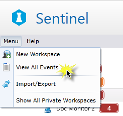 All current events (for every monitor in Sentinel) are displayed in a new events