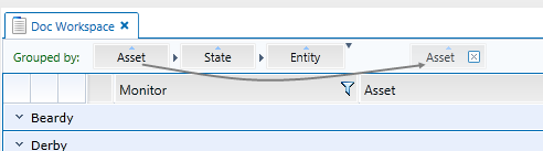 In the screenshot below, you can see groupings of Asset, Entity and State. The groupings are nested in the same order that they appear in the grid header panel, with (Asset) forming the outermost group, (Entity) showing the middle group, and (State) showing the inner group. Within the inner group, items appear with full details.