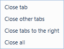 • Click Close tabs to the right to close all tabs displayed to the right of the selected tab.