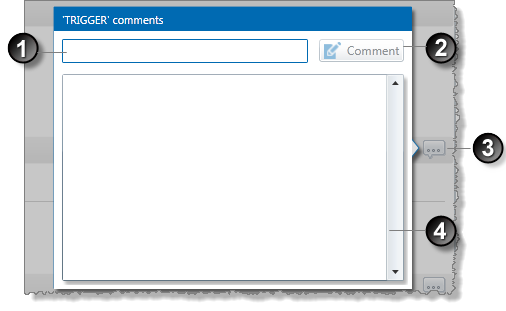 The screen image below depicts the comment panel for a trigger. (In this example, the title is: 'Trigger' comments).