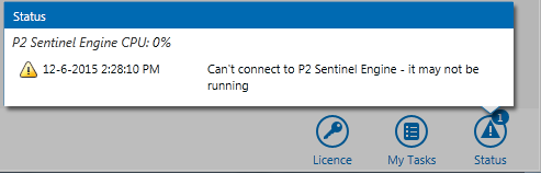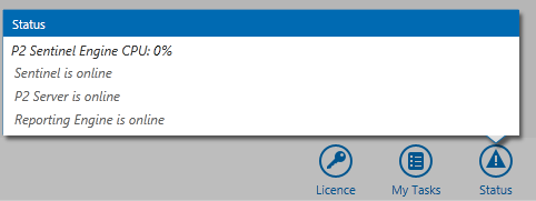 Sentinel Engine CPU usage, as well as Sentinel status, Reporting Engine status and Explorer online status are displayed in the status window.