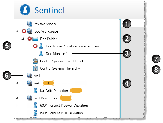Items in Sentinel are arranged into a logical hierarchy of workspaces and folders. This hierarchy assists in the management of monitors.