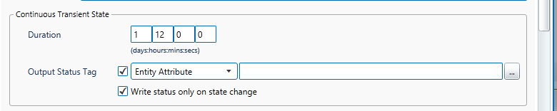An Output Status Tag can be set for both the Continuous Transient State and the Steady State. In each case, this tag can be an entity attribute, either as it is, or as part of a calculation.