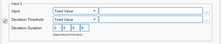 To define Input 2, select the check box to the left of the Input 2 section, then define the Input, Deviation Threshold and Deviation Duration for Input 2.