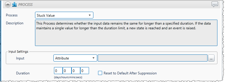 Stuck Value process uses Stuck Value Monitoring to detect whether data has remained unchanged for a specified duration, to cause a Stuck Value state. The process returns to the default state when the value changes again.