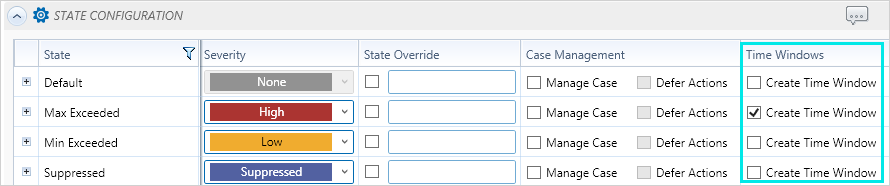 Time Windows selected in Monitor configuration: