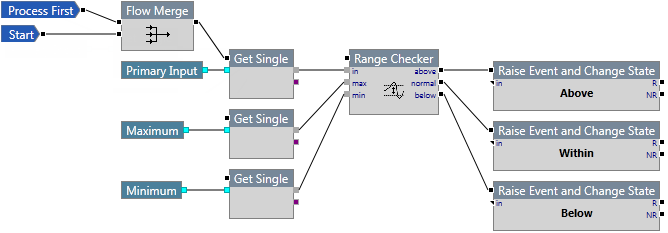 The component that causes the range checker logic to execute should be connected to the flow pin for this component.