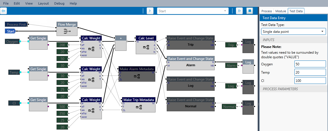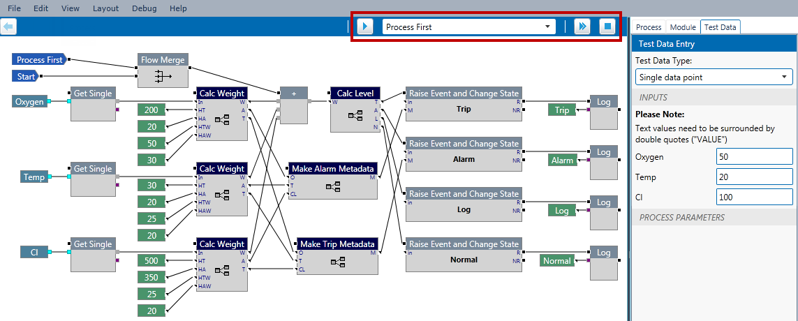 Note: You must click Stop to end the test and return to editing the process.