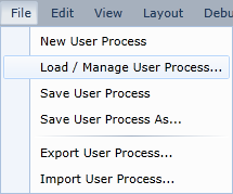 - To import a process that has been saved to your computer, click Import User Process. Note that when you subsequently save an imported process that has the same name as an existing process, the imported process will be saved as a new version of the existing process.