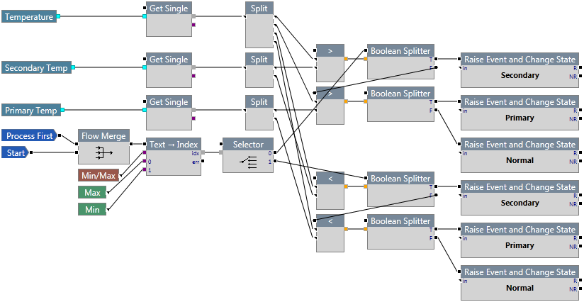 This process is the same as 2-level Alarm Boolean, but instead of a Min/Max checkbox in the UI, uses a drop-down list for the user to select Min or Max.