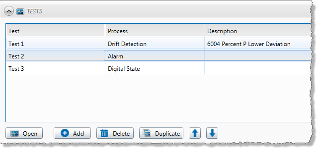 panel of the monitor, click a row on the test grid to select it. - To open the test, double-click on the row or select the row and click the Open