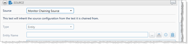 The test inherits the source configuration from the chaining test. If you change the source configuration for the chaining monitor, the change carries through to the chained monitor.