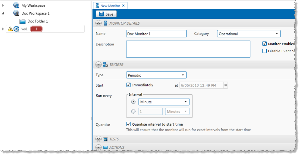 4. To ensure that the monitor is triggered at exact intervals from the start time, select the Quantise check box.