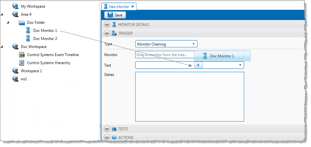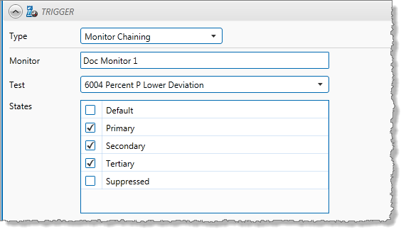 You may want to trigger a monitor when various states are reached by a test within another monitor. To achieve this outcome, the triggered monitor needs a monitor chaining trigger.