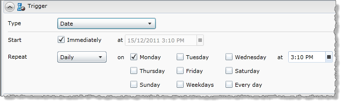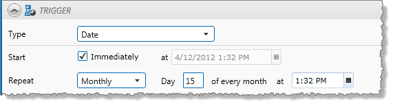 Use a date trigger to initiate monitor processing at selected date intervals, at a set time.