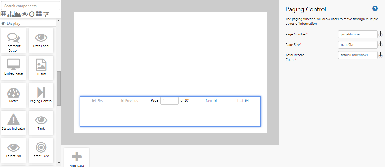Now let's drag and drop a Paging Control onto the page and configure it as follows: