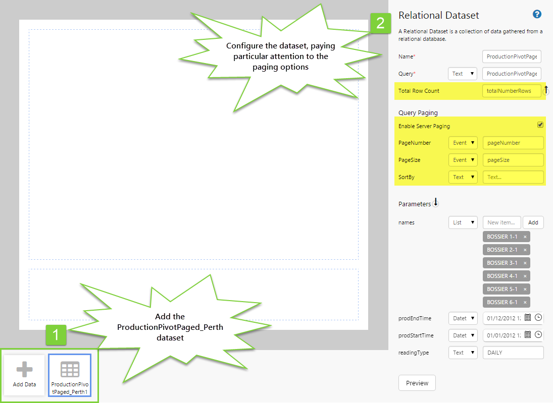 For this example, we are going to use the query “ProductionPivotPaged_Perth”. This is formed with the special paged syntax, as so: