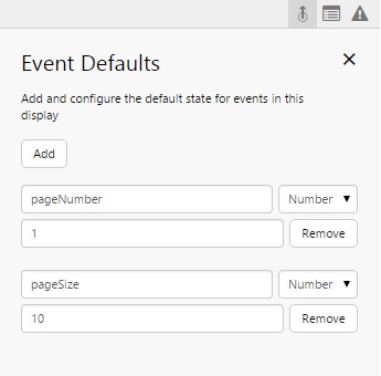 Now, let's set defaults for the pageNumber and pageSize. This is required for pageSize as the Paging Control does not output the page size (although it could if you used a Combo Box to drive the page size).