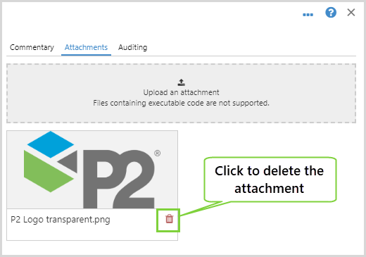 To delete an attachment from an entry, click the red Delete icon next to the attachment you want to remove.