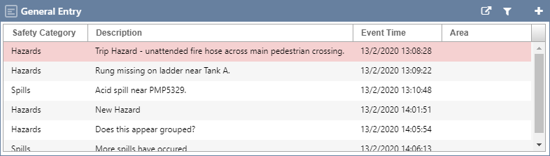 In your Shift Log Workbook, click the + plus button for the log that you want to add the entry to.