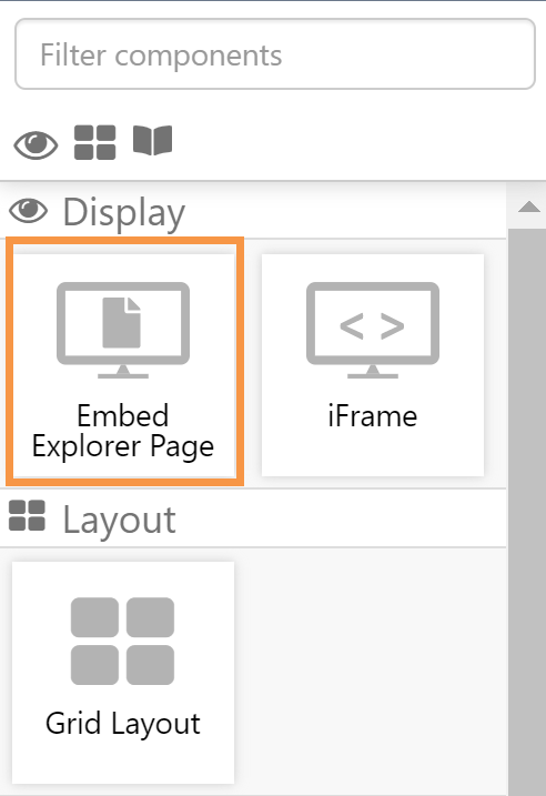 In Explorer Studio, the Embed Explorer Page component has been added to the Display group in the Toolbox.