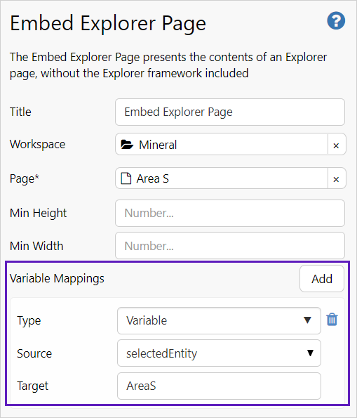 Variable mapping has been added to the embedded Explorer page component, giving users the option of passing parameters from a Shift Log page to the embedded Explorer page.