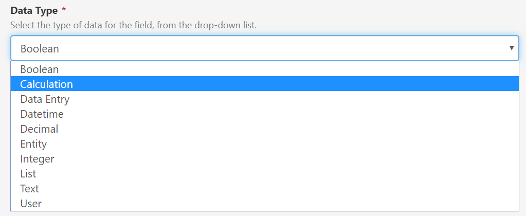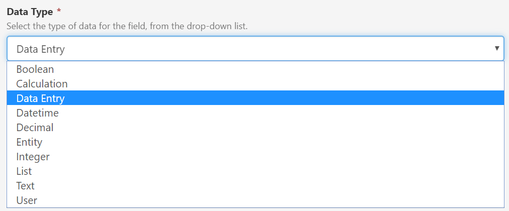 - The following field types are allowed: Integer, Decimal, Calculation, Data Entry.