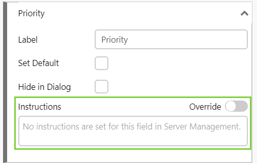 - Default instructions can be created for a Field on a Form, in Server Management.